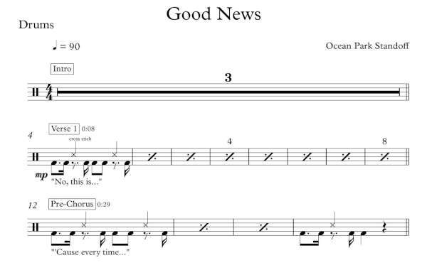 Drum Sheet Music for “Good News” by Ocean Park Standoff.