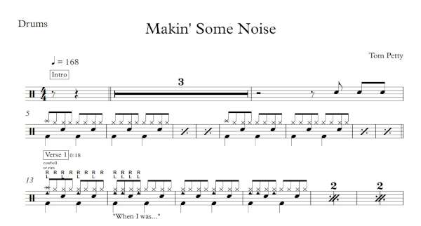 Drum Sheet Music for “Makin’ Some Noise” by Tom Petty & The Heartbreakers.