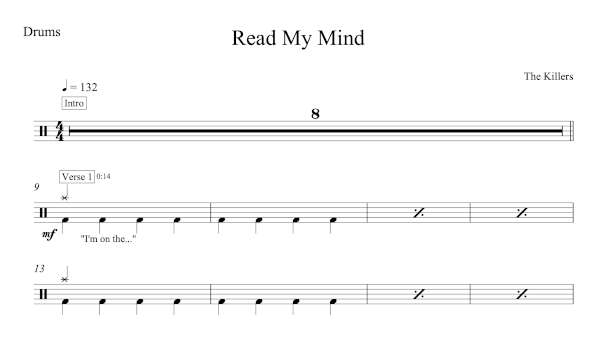 Drum Sheet Music for “Read My Mind” by The Killers.