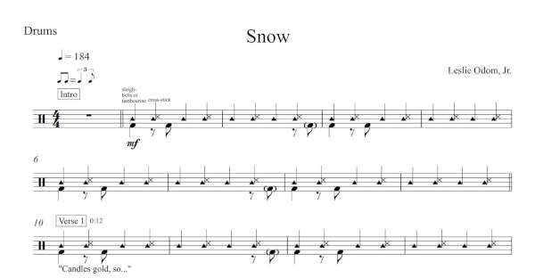 Drum Sheet Music for “Snow” by Leslie Odom, Jr.