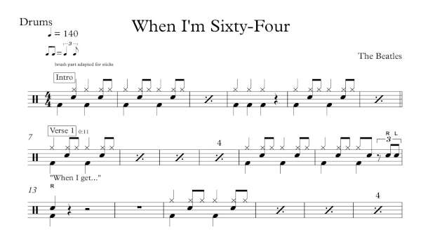 Drum Sheet Music for “When I’m Sixty-Four” by The Beatles.