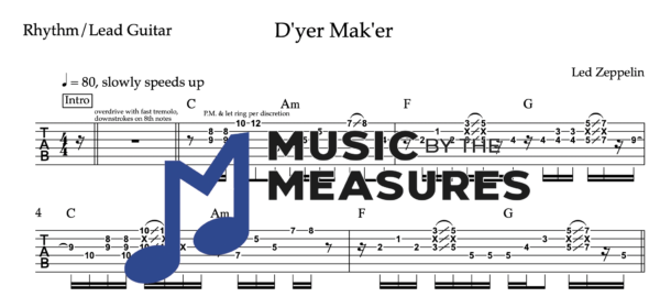 Rhythm Guitar Tablature for “D’yer Mak’er” by Led Zeppelin