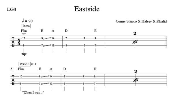 Lead Guitar Tablature for “Eastside” by benny blanco & Halsey & Khalid