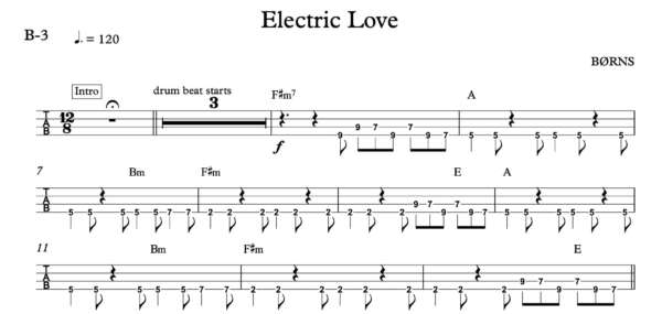 Bass Guitar Tablature for “Electric Love” by BØRNS