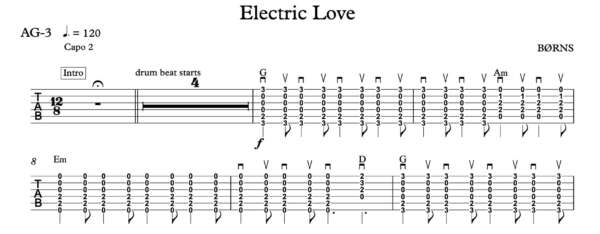 Strum Guitar Tablature for “Electric Love” by BØRNS