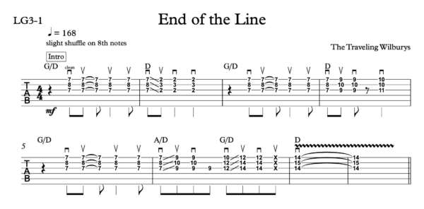 Lead Guitar Tablature for “End of the Line” by The Traveling Wilburys
