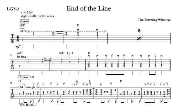 Rhythm Guitar Tablature for “End of the Line” by The Traveling Wilburys