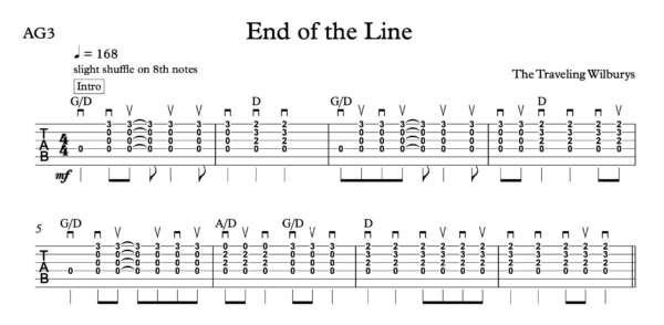 Strum Guitar Tablature for “End of the Line” by The Traveling Wilburys