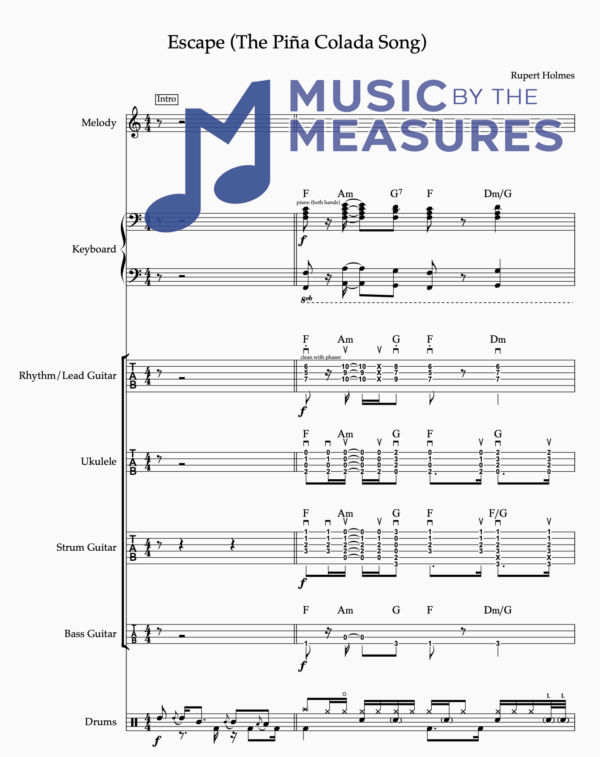 Full Band Sheet Music for “Escape (The Piña Colada Song)” by Rupert Holmes