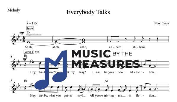 Melody Sheet Music for “Everybody Talks” by Neon Trees