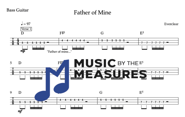 Bass Guitar Tablature for “Father of Mine” by Everclear