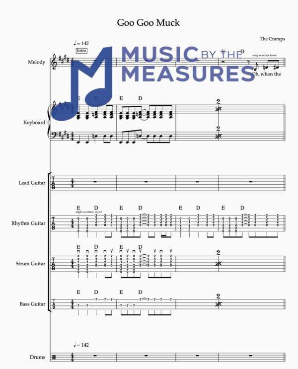Full Band Sheet Music for “Goo Goo Muck” by The Cramps