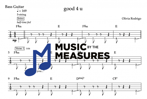 Bass Guitar Tablature for “good 4 u” by Olivia Rodrigo
