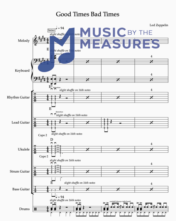 Full Band Sheet Music for “Good Times Bad Times” by Led Zeppelin