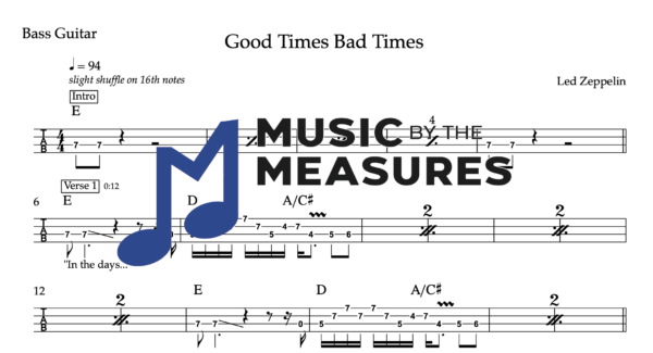 Bass Guitar Tablature for “Good Times Bad Times” by Led Zeppelin