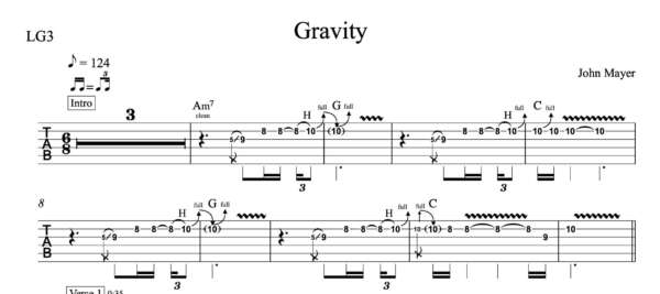 Lead Guitar Tablature for “Gravity” by John Mayer