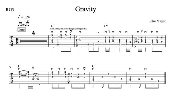Rhythm Guitar Tablature for “Gravity” by John Mayer