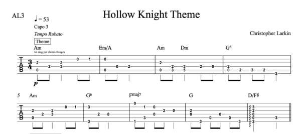 Lead Guitar Tablature for “Hallow Knight Theme” by Christopher Larkin