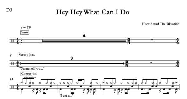 Drum Sheet Music for “Hey Hey What Can I Do” by Hootie And The Blowfish