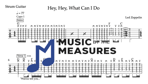 Strum Guitar Tablature for “Hey, Hey, What Can I Do’ by Led Zeppelin