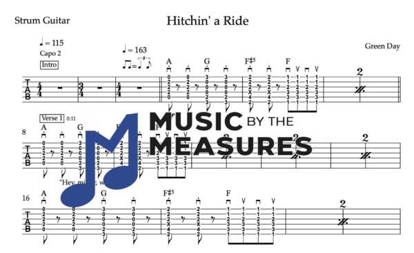 Strum Guitar Tablature for “Hitchin’ a Ride'” by Green Day