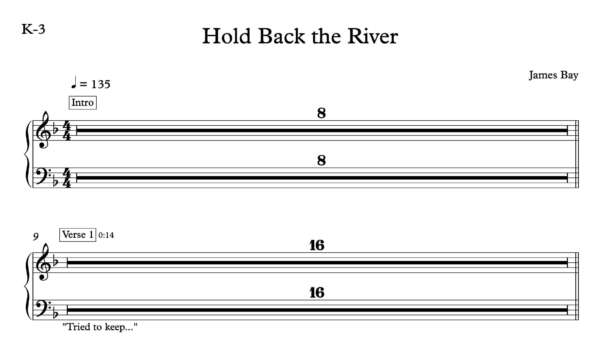 Keyboard Sheet Music for “Hold Back the River” by James Bay