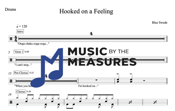 Drum Sheet Music for “Hooked on a Feeling” by Blue Swede