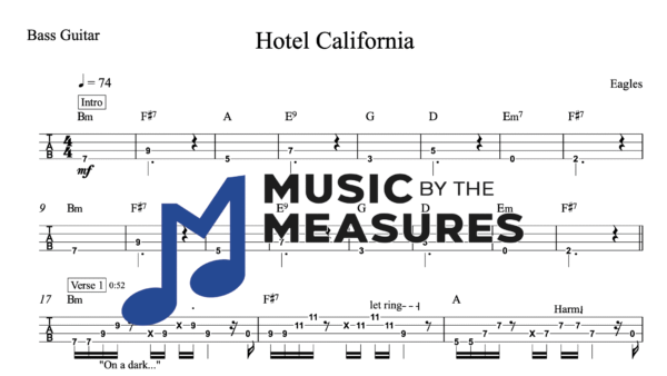 Bass Guitar Tablature for “Hotel California” by Eagles