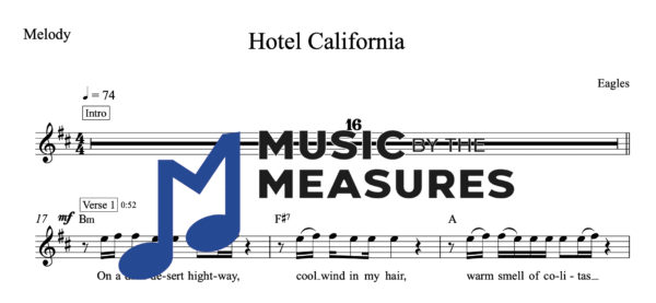 Melody Sheet Music for “Hotel California” by Eagles