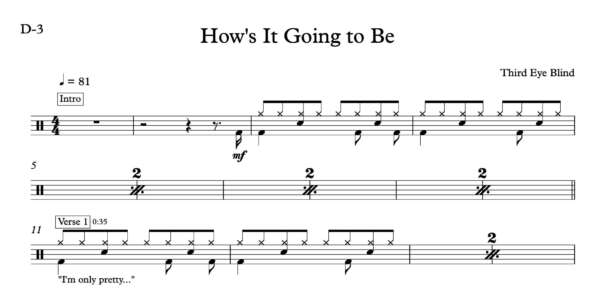 Drum Sheet Music for “How’s It Going to Be” by Third Eye Blind