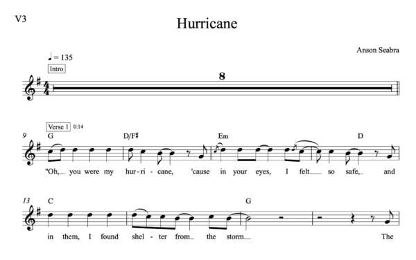 Melody Sheet Music for “Hurricane” by Anson Seabra