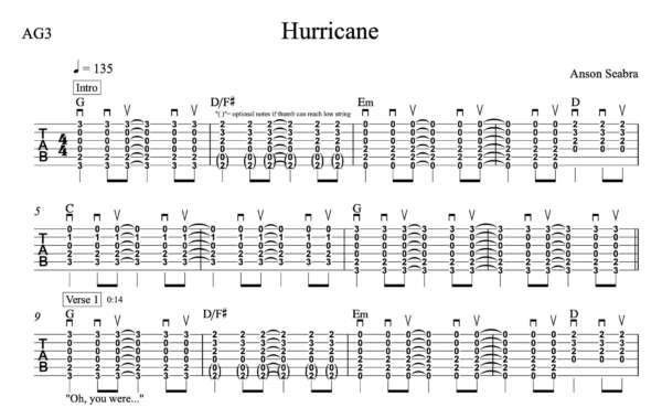 Strum Guitar Tablature for “Hurricane” by Anson Seabra