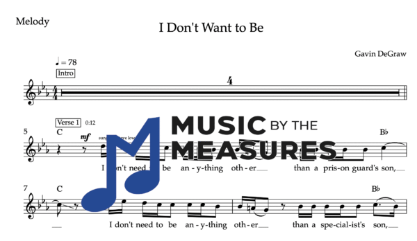 Melody Sheet Music for “I Don’t Want to Be” by Gavin DeGraw