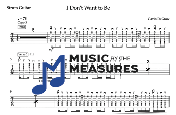 Strum Guitar Tablature for “I Don’t Want to Be” by Gavin DeGraw