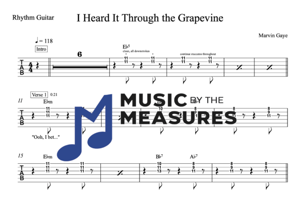 Rhythm Guitar Tablature for “I Heard It Through the Grapevine” by Marvin Gaye