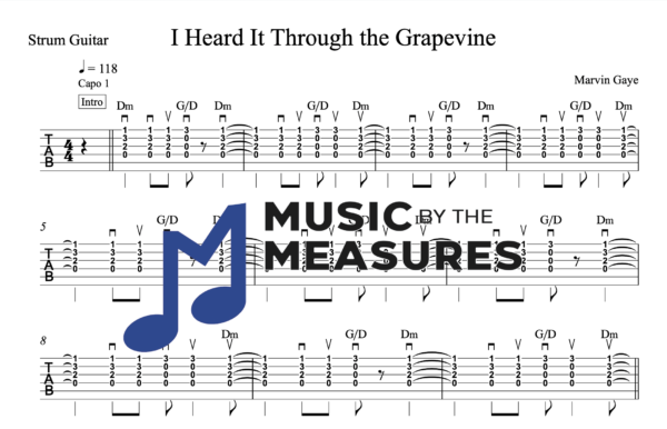 Strum Guitar Tablature for “I Heard It Through the Grapevine” by Marvin Gaye