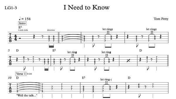 Lead Guitar Tablature for “I Need to Know” by Tom Petty