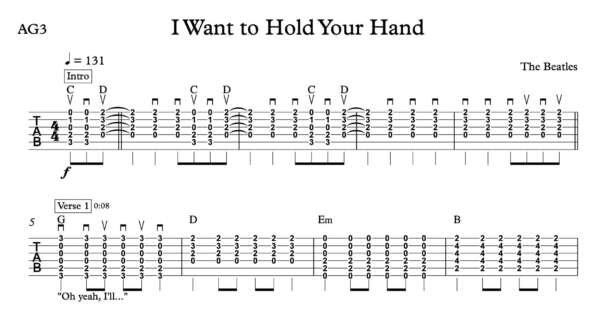 Strum Guitar Tablature for “I Want to Hold Your Hand ” by The Beatles