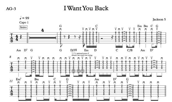 Strum Guitar Tablature for “I Want You Back” by Jackson 5