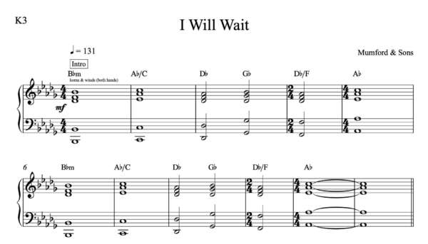 Keyboard Sheet Music for “I Will Wait” by Mumford & Sons