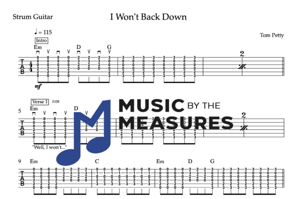 Strum Guitar Tablature for “I Won’t Back Down” by Tom Petty