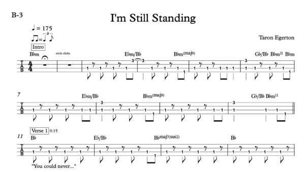 Bass Guitar Tablature for “I’m Still Standing” by Taron Egerton