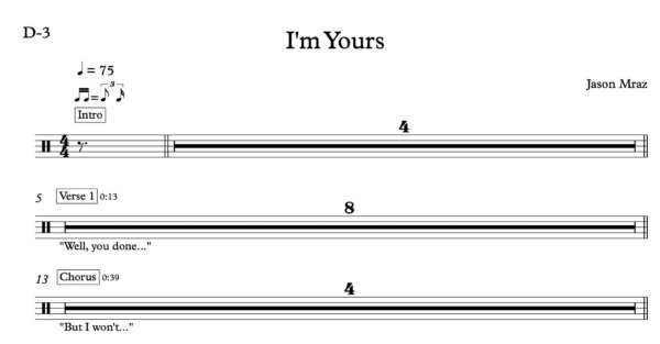 Drum Sheet Music for “I’m Yours” by Jason Marz