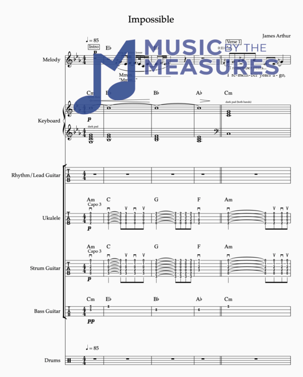 Full Band Sheet Music for “Impossible” by James Arthur