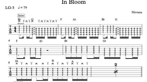 Lead Guitar Tablature for “In Bloom” by Nirvana