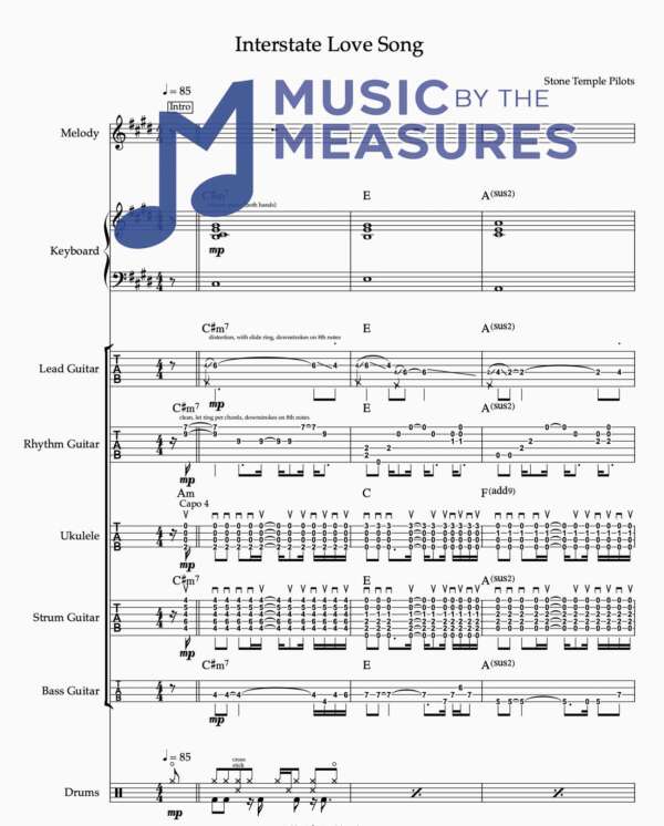Full Band Sheet Music for “Interstate Love Song” by Stone Temple Pilots