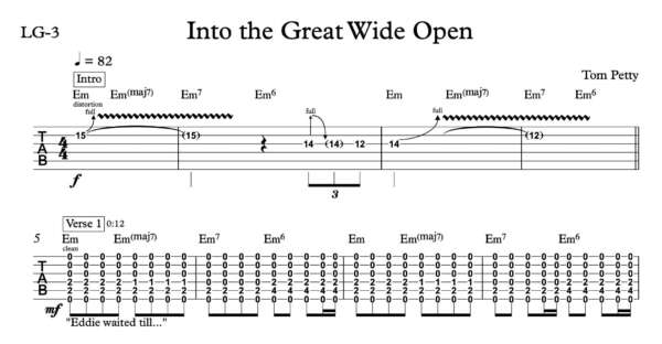Lead Guitar Tablature for “Into the Great Wide Open” by Tom Petty