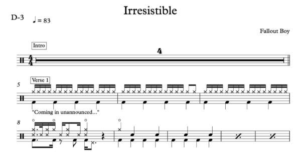 Drum Sheet Music for “Irresistible” by Fallout Boy