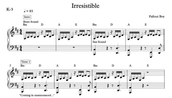 Keyboard Sheet Music for “Irresistible” by Fallout Boy
