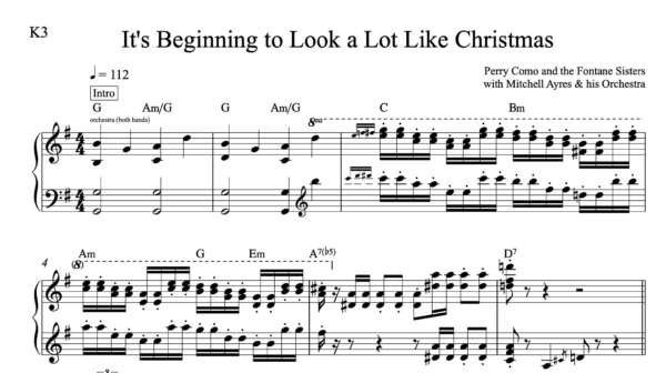 Keyboard Sheet Music for “It’s Beginning to Look a Lot Like Christmas’ by Perry Como